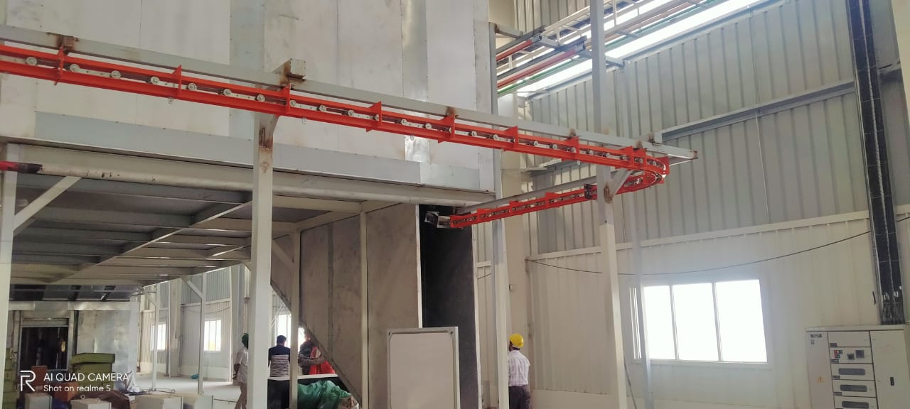 The Bi-Planar or Four-Wheel Chain Conveyor is a rugged, flexible, and reliable material handling system used in assembly lines, paint shops, body shops, and automated production systems. It utilizes specially designed trolleys with four wheels arranged in a two-plane configuration, riding along a modular track with horizontal and vertical articulation.